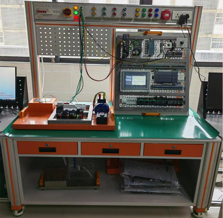 電氣自動(dòng)化高級實(shí)訓平臺包含實(shí)訓平臺、控制掛板、應用模塊、電腦桌、圓凳三部分組成,實(shí)訓平臺采用優(yōu)質(zhì)鋁型材做骨架,鋁型材立柱與實(shí)訓桌面連接。左右兩側及后面封裝優(yōu)質(zhì)鋼板,正面設計儲物柜與抽屜。