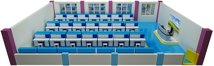 教師臺在學(xué)生臺的基礎上增加電腦桌1張:鋼質(zhì)噴塑結構,預留電腦主機箱與顯示器位置,配備電源總控裝置及基于物聯(lián)網(wǎng)實(shí)訓室安全用電智能控制系統、智慧教室綜合測控系統等: