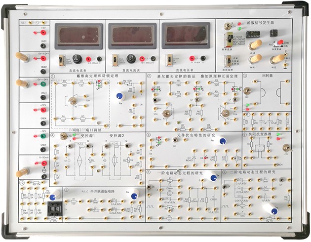 電路原理實(shí)驗箱該系統以箱式設計,集電源、測量用電表、實(shí)驗模塊于一體,實(shí)驗時(shí)只需外接信號源等即可在每個(gè)實(shí)驗模塊中進(jìn)行實(shí)驗,實(shí)驗箱連接部分采用了鎖緊疊插式鍍金大孔,連接可靠、壽命長(cháng),實(shí)驗數據精確,面板采用了雙面設計工藝,正面為線(xiàn)路原理,反面為具體線(xiàn)路分布和元件,使學(xué)生在實(shí)驗時(shí)對原理一目了然。