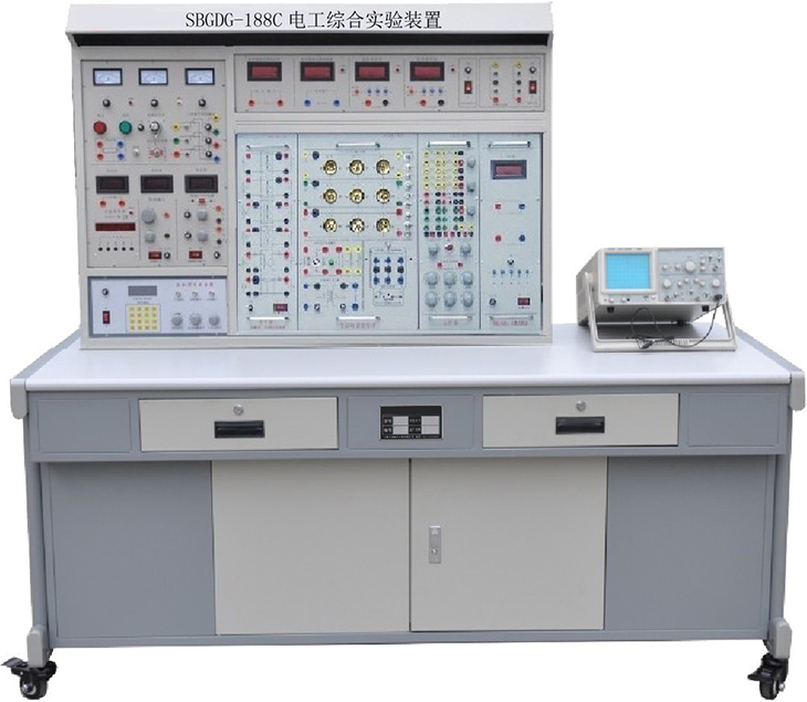 電工綜合實(shí)驗裝置主要由電源儀器控制屏、實(shí)驗桌、實(shí)驗掛箱及三相鼠籠電機等組成。