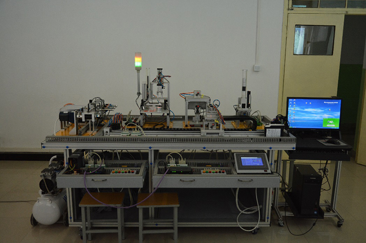 機電一體化實(shí)訓設備,每臺實(shí)訓設備配置了空氣開(kāi)關(guān)、按鈕、接觸器、中間繼電器、PLC、變頻器、氣動(dòng)元件、觸摸屏等散件,全部由學(xué)生自由設計,組裝。采用線(xiàn)槽配線(xiàn),完全能夠滿(mǎn)足《機電一體化》中學(xué)習情境的教學(xué)。通過(guò)該實(shí)訓室實(shí)訓項目的學(xué)習,學(xué)生能夠掌握機電一體化應用技術(shù),掌握人機界面的使用,掌握運動(dòng)控制技術(shù)、總線(xiàn)控制技術(shù)、過(guò)程控制技術(shù)等。機電一體化實(shí)訓設備適用于《機電一體化技術(shù)》、《氣動(dòng)控制技術(shù)》、《變頻器應用技術(shù)》、《紡織設備機電控制》等課程的教學(xué)。