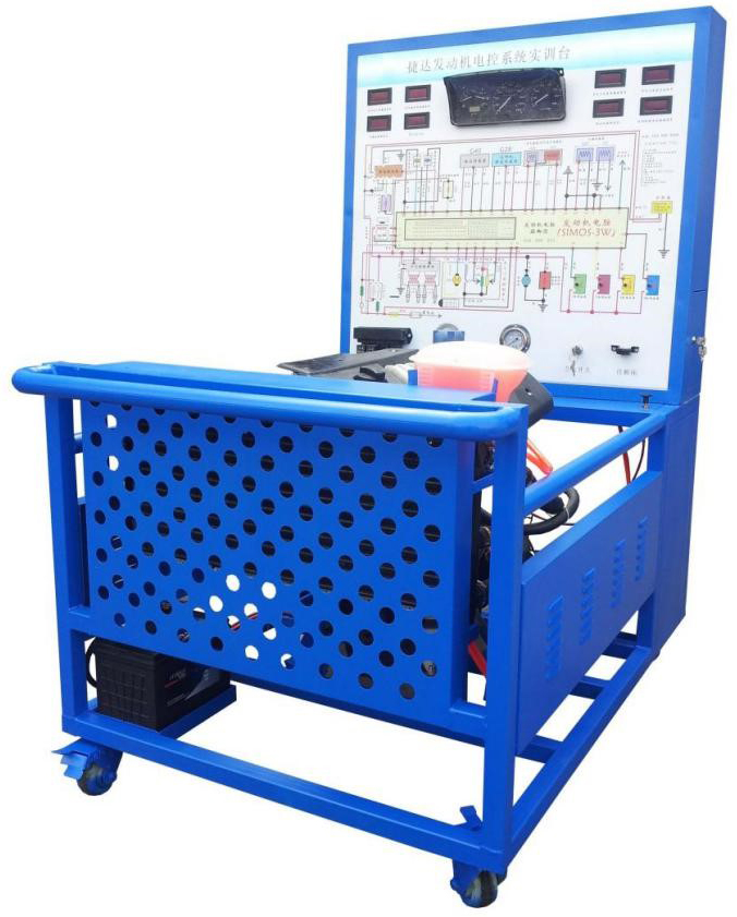 汽油電噴發(fā)動(dòng)機實(shí)訓設備采用翻新電控汽油發(fā)動(dòng)機總成及運行附件的固定臺架和運行檢測控制面板臺架兩部分組成。