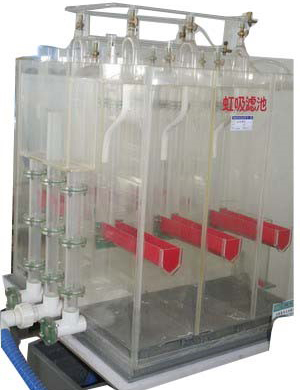 2.虹吸濾池為透明有機玻璃制造,可觀(guān)察污水在各腔室內的運行情況。