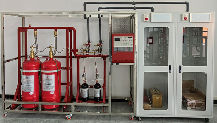 整個(gè)運作系統儲氣瓶采用空瓶安裝,系統運作采用模擬氣源防真滅火。并配配有相應探測器與聯(lián)動(dòng)控制主機。