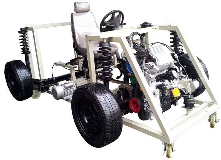 1.安裝真實(shí)的汽車(chē)底盤(pán)各系統(包含前后懸掛系、轉向系、傳動(dòng)系、手動(dòng)變速器及掛檔機構、制動(dòng)系),充分展示汽車(chē)底盤(pán)各系統的組成結構。