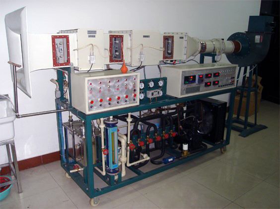 本裝置集直流空調,制冷壓縮機性能,制冷熱泵,表冷器性能,加熱器性能于一體,可進(jìn)行空氣的加熱,加濕,冷卻,干燥,蒸發(fā)器,冷凝器進(jìn)行換相,可測出各點(diǎn)溫度、濕度、壓力、風(fēng)量、水流量及功率,計算出制冷量、功率、制冷系數、效率、并進(jìn)行熱平衡計算。