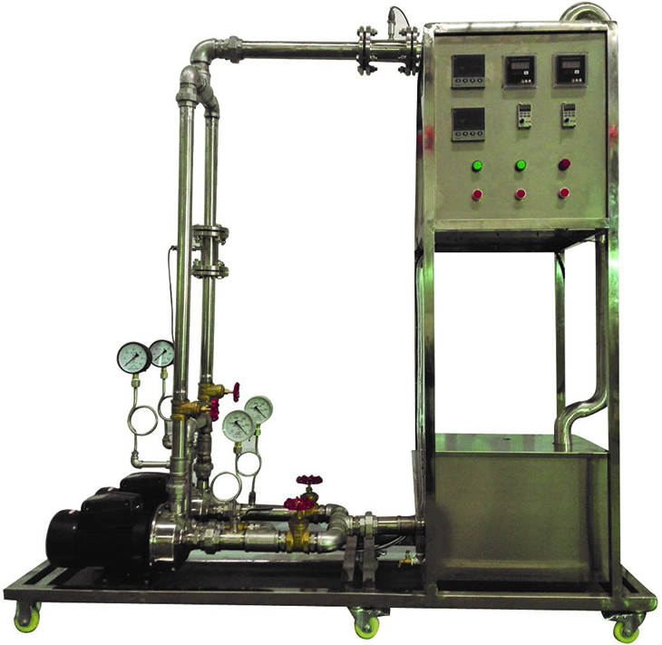 單相矢量變頻器,規格:(0-50)Hz。 指針式壓力表:表盤(pán)直徑Φ100mm 測量范圍0-0.6MPa,精度1.5級。 指針式真空表:表盤(pán)直徑Φ100mm 測量范圍-0.1-0MPa,精度1.5級。 功率變送器、智能功率數字顯示儀。 光電傳感器:數顯,測量范圍0~2999rpm,精度1rpm,轉速檢測機構。 宇電AI702M溫度數字顯示儀。 宇電AI702M流量數字顯示儀。 DN40渦輪流量計:1~20m3/h,4-20mA遠傳輸出,流量檢測機構。 不銹鋼離心泵:功率750W,最大流量7.2m3/h;2臺。 水箱:304不銹鋼材質(zhì),容積100L,帶貯水排空底閥,管路循環(huán)回水與泵吸入口間隔板設計。 管路:304衛生級不銹鋼材質(zhì),采用不銹鋼快裝活接與管路連接,總出口閘閥;管道法蘭連接渦輪流量計。 電器:接觸器、開(kāi)關(guān)、漏電保護空氣開(kāi)關(guān)。 304不銹鋼儀表柜:測控、電器設備在實(shí)驗架上。 304不銹鋼材質(zhì)框架1800*600*1900mm(長(cháng)×寬×高),帶腳輪及禁錮腳。 |