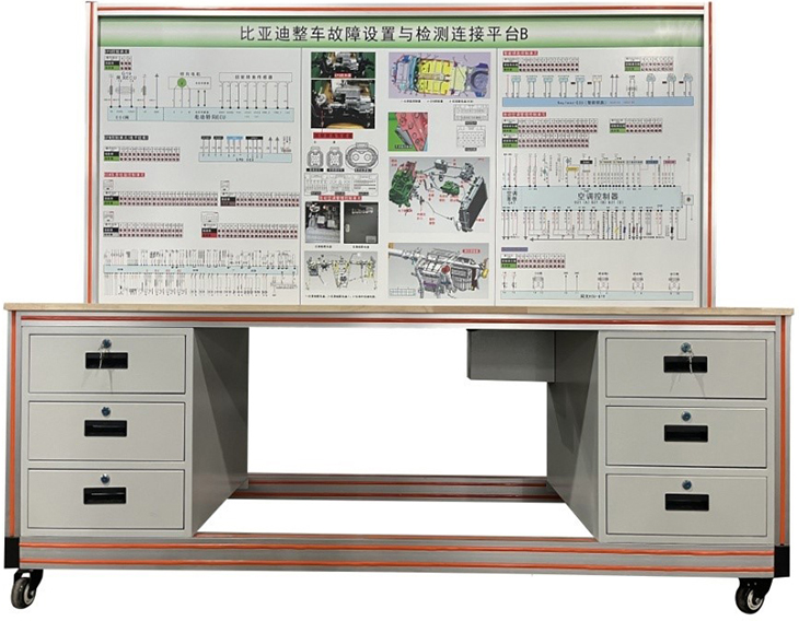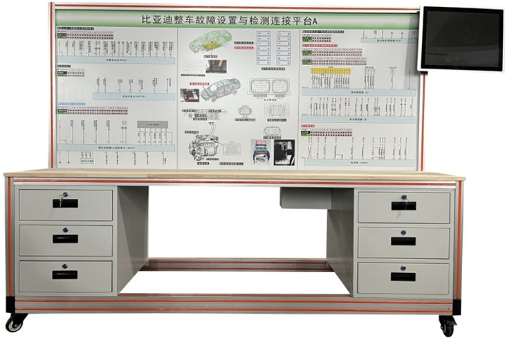 1.整車(chē)故障設置與檢測連接平臺(帶雙抽屜)1套:新能源三電電控系統1套,組合儀表等其他低壓電器電控1套;