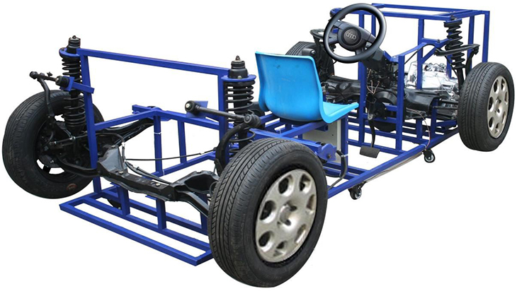 1.安裝真實(shí)的汽車(chē)底盤(pán)各系統(包含前后懸掛系、轉向系、傳動(dòng)系、手動(dòng)變速器及掛檔機構、制動(dòng)系),充分展示汽車(chē)底盤(pán)各系統的組成結構。