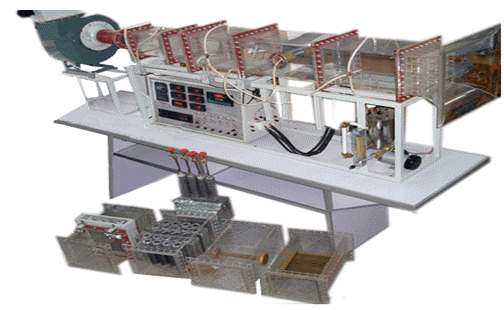 風(fēng)機,自動(dòng)調節風(fēng)門(mén),組合式有機玻璃風(fēng)洞,有機玻璃實(shí)驗管段,有機玻璃叉排、順排實(shí)驗段,旋轉圓柱試件,紫銅平板試件,穩壓電源配電位器調節加熱功率,電流表,電壓表,畢托管及差壓傳感器,PT100熱電阻測溫,巡檢儀顯示溫度、阻力、流量,不銹鋼臺架等。