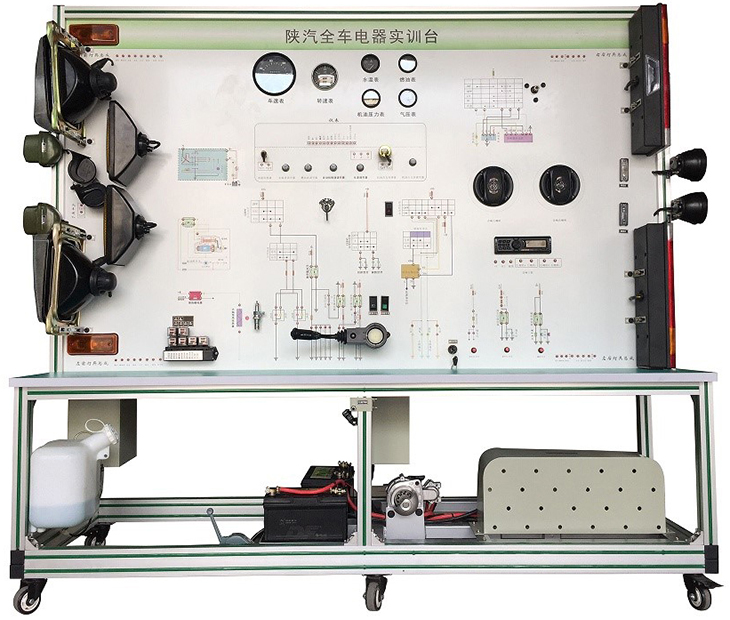 全車(chē)電器電路實(shí)訓設備采用陜汽SX2220柴油機整車(chē)電器實(shí)物為基礎,充分展示汽車(chē)儀表系統、燈光系統、雨刮系統、喇叭系統、發(fā)動(dòng)機電器系統、起動(dòng)系統和充電系統等汽車(chē)電器各系統的組成結構和工作過(guò)程。