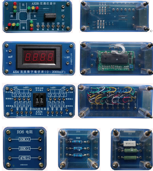(透明電工電子元件模塊示例圖,共9塊板,140多只透明有機塑料封閉元件盒)