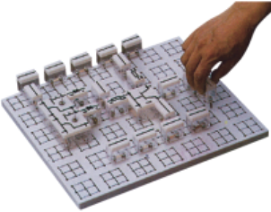 實(shí)訓桌一桌兩座,實(shí)訓桌中央配有通用九孔萬(wàn)能插件板(尺寸:35×90cm ),九孔萬(wàn)能插件板主體由ABS注塑而成,表面布有九孔成一組相互聯(lián)通的插孔,九孔萬(wàn)能插件板內部?jì)惹?span lang="EN-US">126組銅質(zhì)九孔一體成型嵌件(共有1134孔)。實(shí)訓中的弱電模塊必須以獨立封裝的透明元件盒為單一模塊,元件盒統一都能配合九孔萬(wàn)能插件板像搭積木一樣的形式自由搭建組合電路;元件盒盒體透明,內裝元件直觀(guān)性好,盒蓋印刷電路圖防刮耐磨,符號美觀(guān)清晰。元件盒盒體與盒蓋采用較科學(xué)的壓卡式結構,維修拆裝方便。每張臺桌配有一粒膠皮板,保護通用底板與桌面(如需在桌上放置電動(dòng)機、焊接等)。