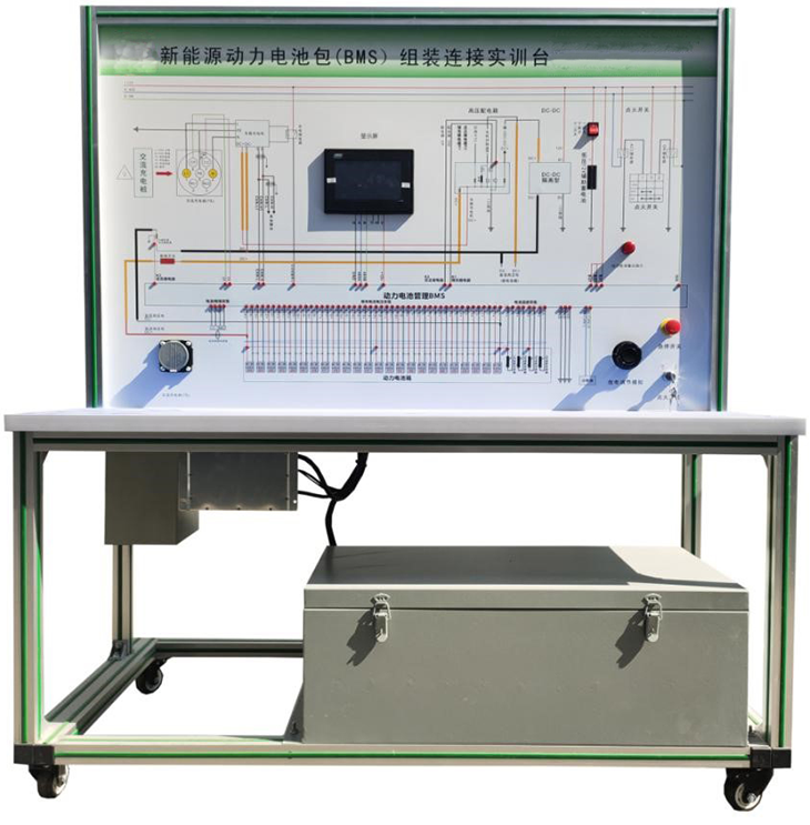 選用主流新能源磷酸鐵鋰動(dòng)力電池包,單體電池3.2V20AH,共24串,一體式BMS電池管理系統,有被動(dòng)均衡功能;真實(shí)地呈現了磷酸鐵鋰動(dòng)力電池包核心零部件之間的連接控制關(guān)系、安裝位置和運行參數,以及高壓系統安全注意事項;通過(guò)比照電路原理圖,由學(xué)員自己組裝連線(xiàn),培養學(xué)員電池組裝連接動(dòng)手能力,適用于院校新能源課程教學(xué)和維修實(shí)訓設備。