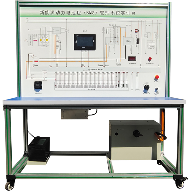 磷酸鐵鋰動(dòng)力電池包與鐵制電池箱(單體電池3.2V 20AH,24串)、BMS鋰電管理一體機、動(dòng)力電池包觸摸顯示屏、車(chē)載充電機、國標充電插口、國標充電槍、緊急斷電開(kāi)關(guān)、霍爾電流傳感器、直流接觸器(包含充電繼電器、總正繼電器、總負繼電器、預充繼電器)、DC-DC轉換器(72V-12V30A)、輔助蓄電池(12V45AH)、放電控制繼電器與放電負載電阻、預充電阻器、可移動(dòng)實(shí)訓臺(1500×700×1700mm 帶自鎖腳輪裝置,帶安裝檢測端子的原理面板,面板1448×940mm)、故障模擬與排除裝置、設備操作說(shuō)明書(shū)。