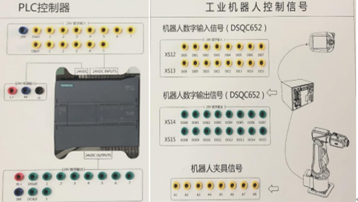 "PLC控制信號區",采用西門(mén)子S7-1214網(wǎng)絡(luò )型PLC,通過(guò)將PLC的IO外置,能夠培養學(xué)生對PLC電氣控制設計能力的培養。 "工業(yè)機器人控制信號"區,包括機器人輸入信號、機器人輸出信號和機器人本體信號,用于進(jìn)行和PLC、外部實(shí)訓模塊進(jìn)行信號交互,實(shí)現真正的開(kāi)放式系統設計和應用。