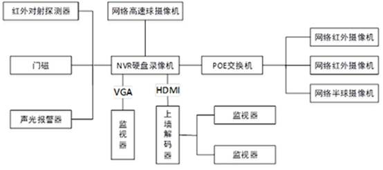 系統配置有高速球云臺攝像機、一體化槍型攝像機、紅外攝像機、室內全方位云臺、矩陣主機、彩色監視器、硬盤(pán)錄像機等器件,可進(jìn)行器件的選擇、檢測和安裝。完成視頻監控系統的線(xiàn)路鋪設和連接。通過(guò)系統模塊的參數設置和編程,實(shí)現監視器的視頻監控、畫(huà)面切換和報警聯(lián)動(dòng)錄像等功能。