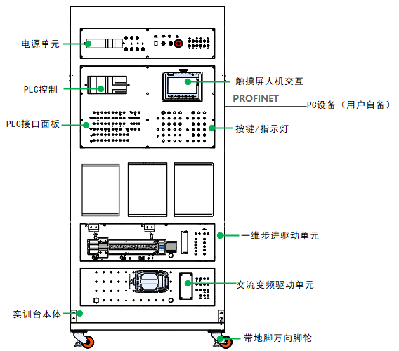 學(xué)生既可通過(guò)系統配備的功能模塊開(kāi)展PLC控制實(shí)驗,也可通過(guò)觸摸屏組態(tài)豐富有趣的虛擬被控對象,從最基本的控制指令到可實(shí)現多個(gè)控制系統的模擬及實(shí)物控制。完全開(kāi)放的結構,賦予學(xué)生動(dòng)手操作的空間,自由搭建、功能擴展,高度靈活性、易維護、可持續升級,特別適合開(kāi)展需求多樣的課程設計項目、機電創(chuàng )新項目、智能制造基礎項目,是符合"新工科"建設理念的教學(xué)實(shí)驗系統。