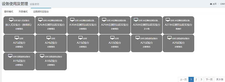 學(xué)生等通過(guò)預約或者教師授權,獲得實(shí)驗臺的使用權限后,在對應的時(shí)間即可登錄系統,在系統內看到可用的實(shí)驗臺。管理教師登錄時(shí),可以看到每一臺實(shí)驗臺的狀態(tài),以及當前使用人。