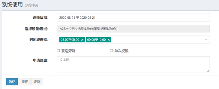 學(xué)生登錄系統后,可以主動(dòng)發(fā)起預約,預約特定日期、特定時(shí)間段的遠程實(shí)驗臺。