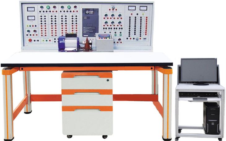 實(shí)訓裝置由控制屏、實(shí)訓桌、變頻實(shí)訓組件、繼電接觸實(shí)訓組件、數字量/模擬量輸入輸出給定指示組件、三相異步電機、電機導軌、測速機構等組成。
