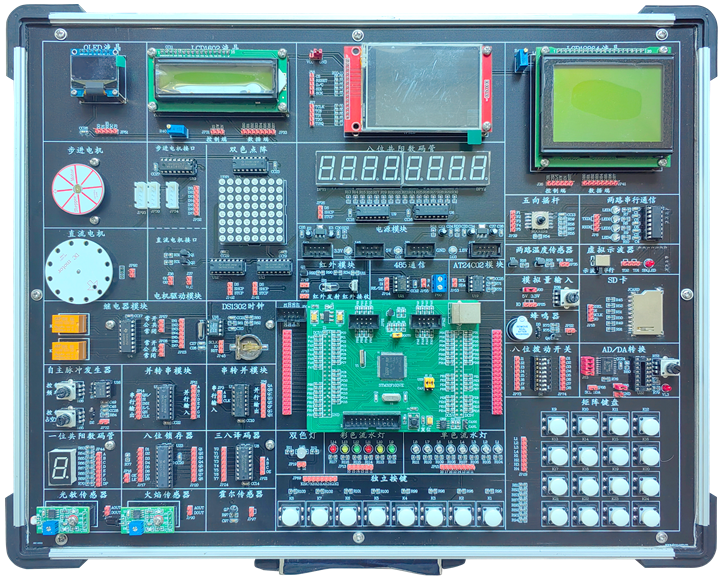 含箱體、電源、STM32核心系統、實(shí)驗模塊電路。 |