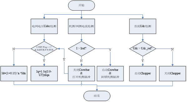 4)實(shí)現風(fēng)速和風(fēng)力機模擬,機組并網(wǎng)控制,機組最大功率運行控制,機組恒速運行,機組限功率運行,機組低電壓穿越,機組脫網(wǎng)控制等控制功能;