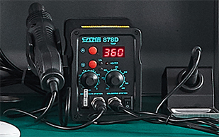 2、熱風(fēng)槍焊臺1套。包含熱風(fēng)槍1個(gè),恒溫烙鐵和烙鐵架1套。