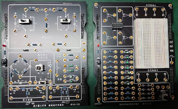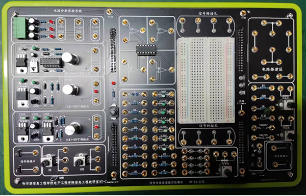 2、實(shí)驗設計型。電路在設計上即滿(mǎn)足驗證實(shí)驗的需要,同時(shí)也把開(kāi)放型的電路設計好,加入開(kāi)放型芯片管座、面包板、信號轉接、元件庫等,可方便學(xué)生動(dòng)手搭建電路和測試。