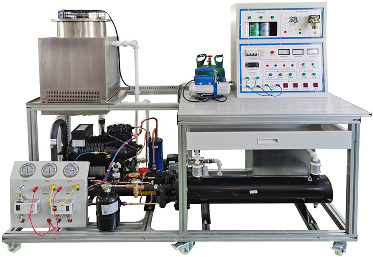 制冷與空調運行操作實(shí)訓設備根據《制冷與空調設備運行操作作業(yè)安全技術(shù)實(shí)際操作考試標準》研發(fā)。采用蒸汽壓縮式制冷循環(huán)系統,配備全封閉式制冷壓縮機、冷凝器、蒸發(fā)器等制冷系統真實(shí)部件,并設有智能溫度調節儀、流量計、壓力表、電壓表、電流表等測量?jì)x表?己艘詫(shí)際操作、仿真模擬操作完成。