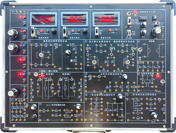 電路分析實(shí)驗系統以箱式設計,集電源、測量用電表、實(shí)驗模塊于一體,實(shí)驗箱連接部分采用了鎖緊疊插式鍍金大孔,連接可靠、壽命長(cháng),實(shí)驗數據精確,面板采用了雙面板敷銅制作工藝,正面為線(xiàn)路原理,反面為具體線(xiàn)路分布和元件,使學(xué)生在實(shí)驗時(shí)對原理一目了然。