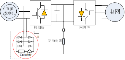 主要為在變流器上添加Crowbar和Chopper電路,并在變流器中配合進(jìn)行相應控制: