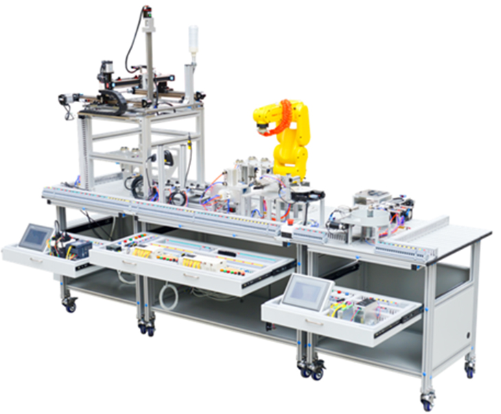 6、設備臺架:設備以4張鋁合金導軌式實(shí)訓臺為基礎平臺,整體結構采用開(kāi)放式和拆裝式,可根據不同形式生產(chǎn)功能將多個(gè)實(shí)訓臺組合成不同長(cháng)寬的基礎工作面,然后在基礎平臺上根據現有的機械部件,以模塊化的方式組裝和搭建具有生產(chǎn)功能的機電一體化智能生產(chǎn)線(xiàn)設備,也可添加其它機械部件組裝其他生產(chǎn)設備,使整個(gè)裝置能夠靈活的按教學(xué)需求組裝具有生產(chǎn)功能的機電一體化智能生產(chǎn)線(xiàn)設備。實(shí)訓臺的控制單元采用式網(wǎng)孔抽屜,可根據不用的控制需求,選擇或擴展相關(guān)的電氣控制元器件,靈活的安裝在抽屜網(wǎng)孔面上。