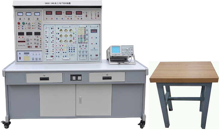 實(shí)驗桌為鐵質(zhì)雙層亞光密紋噴塑結構,桌面為防火、防水、耐磨高密度板;左右設有兩個(gè)大抽屜(帶鎖),用于放置工具及資料。右邊設有放置示波器用的可拆卸擱板。