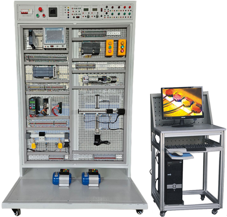 實(shí)訓裝置由S7-1500單元、S7-1200單元、S7-200SMART單元、變頻調速單元、小車(chē)運動(dòng)控制單元、、實(shí)訓組件、電工基礎實(shí)訓單元二維絲桿控制單元、觸摸屏單元、以太網(wǎng)交換機、交流電機等組成。