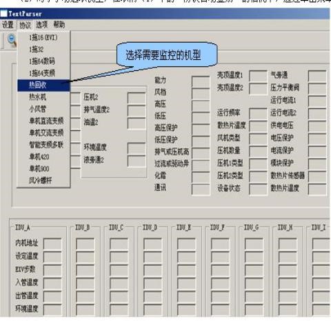 2監測維修軟件:軟件配有中央空調和空調主機系統轉換,軟件可“手動(dòng)”或“自動(dòng)”選取需要監測的機型: