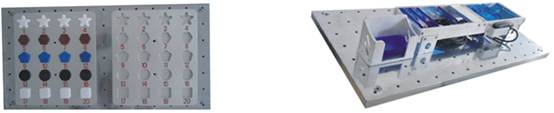 圖塊搬運模型:多形狀物料搬運:機器人通過(guò)吸盤(pán)夾具依次把一個(gè)物料板擺放好的多種形狀物料(方形、圓形、五邊形、六邊形、五角星)拾取搬運到另一個(gè)物料板上;圓形物料搬運:機器人通過(guò)吸盤(pán)夾具依次把一個(gè)物料板擺放好的物料拾取搬運到另一個(gè)物料板上;物料板可以水平固定到操作臺,也可傾斜一點(diǎn)角度安裝到操作臺;圓形物料有兩種,一種金屬錢(qián)幣形物料,一種單面錐形物料;每個(gè)物料板對應工位都蝕刻有物料編號;搬運形式可根據要求靈活組合,形式多樣,能滿(mǎn)足平面、斜面、陣列、指定編號位置、多種物料混合等要求;強化對機器人點(diǎn)位示教技能移訓練。