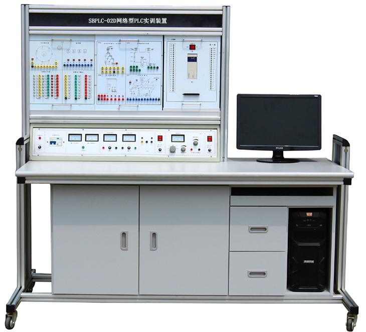 SBPLC-02D網(wǎng)絡(luò )型PLC實(shí)訓裝置,PLC控制+變頻+觸摸屏+步進(jìn)+伺服