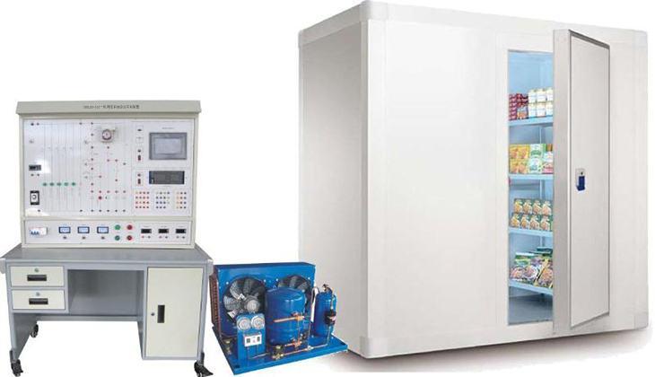 實(shí)訓裝置主要由控制屏、實(shí)訓桌、風(fēng)冷制冷機組及拼裝式冷庫等組成