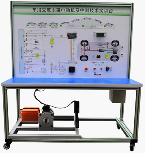 檢測控制面板(裝有各種檢測端子,1448×940mm彩色電路圖和工作原理示意圖)、組合儀表、點(diǎn)火開(kāi)關(guān)、電機控制器、車(chē)載充電器與充電接口、DC-DC轉換器、鋰動(dòng)力電池組、電動(dòng)車(chē)電機(永磁同步電機)、剎車(chē)開(kāi)關(guān)、檔位開(kāi)關(guān)、油門(mén)控制裝置、大電流繼電器、電源總開(kāi)關(guān)、急停開(kāi)關(guān)、輔助蓄電池(12V45AH)、一體化全鋁合金型材搭建的移動(dòng)臺架(1500×700×1700mm (帶自鎖腳輪裝置,帶安裝檢測端子的原理面板,面板1448×940mm)、設備操作說(shuō)明書(shū)。