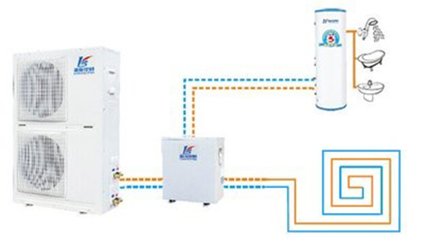 4、空氣源熱泵機組:由1臺1P 熱泵機組成,電壓220V、制冷量2.3Kw、制熱量2.7kW。