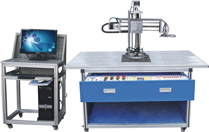 工業(yè)機械手實(shí)訓裝置為坐標式機械手,可完成機械手旋轉、手臂垂直上下移動(dòng)、手臂水平移動(dòng),手爪旋轉四個(gè)自由度的位置精確控制。同時(shí)配置晶體管式可編程控制器,用于對整個(gè)機械手進(jìn)行復雜的位置控制。通過(guò)在該實(shí)訓裝置上的實(shí)訓和操作,學(xué)生可熟練掌握PLC高級指令、傳感器、旋轉編碼器、氣動(dòng)控制、步進(jìn)電機、氣動(dòng)手指、直流電機、精確機械位置傳動(dòng)等技術(shù)的綜合應用。