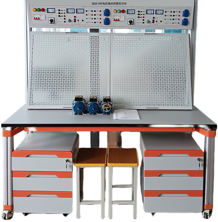 電機拖動(dòng)技能實(shí)訓臺由實(shí)訓屏(內置電源)、實(shí)訓桌、實(shí)訓儲物柜三大部分組成。
