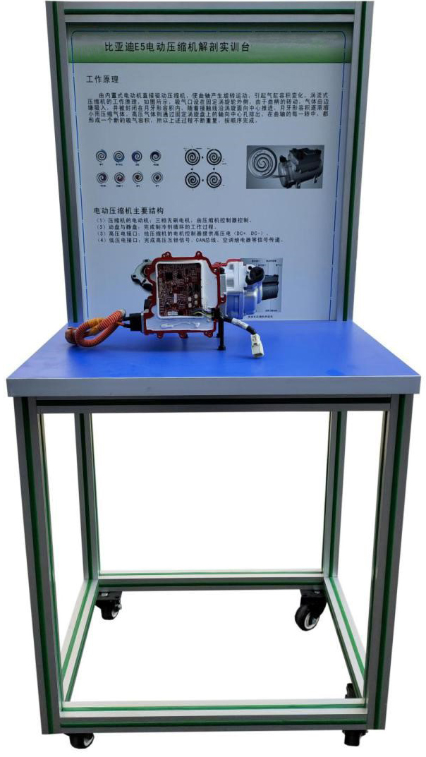 解剖的電動(dòng)車(chē)壓縮機,可移動(dòng)臺架(帶原理教學(xué)板)。