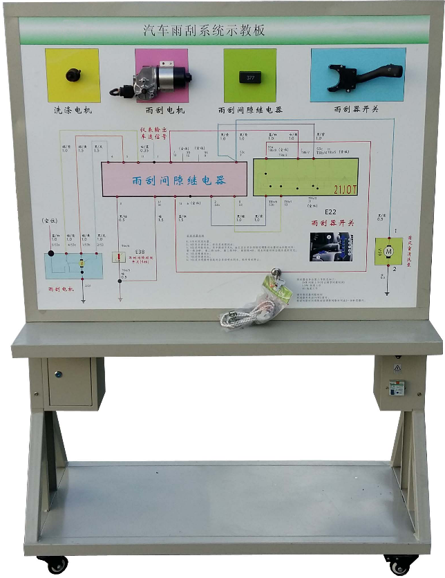 2.面板采用耐創(chuàng )擊、耐污染、防火、防潮的高級鋁塑板,表面經(jīng)特殊工藝噴涂底漆處理;學(xué)校學(xué)員可直觀(guān)對照電路圖和實(shí)物,認識和分析雨刮和清洗系統的工作原理。