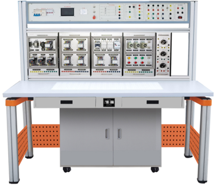 掛箱上已安裝有熔斷器、鈕子開(kāi)關(guān)、交流接觸器、時(shí)間繼電器、直流接觸器、按鈕開(kāi)關(guān)、信號指示燈、熱繼電器等,所有器件均采用國內外知名品牌。各種實(shí)訓元器件的接線(xiàn)都在接線(xiàn)端子排上進(jìn)行接線(xiàn),避免了因長(cháng)期在器件本身進(jìn)行螺絲拆裝而導致元器件的損耗,通過(guò)走線(xiàn)槽走線(xiàn),進(jìn)行工藝布線(xiàn)訓練。實(shí)訓電路與裝置電源的連接通過(guò)安全插座和高可靠護套結構手槍插連接線(xiàn),安全快捷。