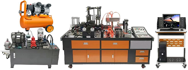 液壓與氣動(dòng)綜合實(shí)訓平臺主要由實(shí)訓平臺、液壓元件模塊、疊加閥實(shí)訓模塊、氣動(dòng)元件模塊、電氣控制模塊、液壓與氣動(dòng)仿真軟件、測控儀表、裝調工具、實(shí)訓配件、電腦桌等組成。