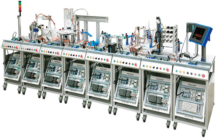 模塊化柔性生產(chǎn)線(xiàn)實(shí)訓系統(八站)MPS網(wǎng)絡(luò )型模塊式柔性自動(dòng)化生產(chǎn)線(xiàn)實(shí)訓系統是一種最為典型的機電一體化、自動(dòng)化類(lèi)產(chǎn)品,它是為職業(yè)院校、教育培訓機構等而研制的,它適合機械制造及其自動(dòng)化、機電一體化、電氣工程及自動(dòng)化、控制工程、測控技術(shù)、計算機控制、自動(dòng)控制等相關(guān)專(zhuān)業(yè)的教學(xué)和培訓。它接近工業(yè)生產(chǎn)制造現場(chǎng)基礎上又針對實(shí)訓教學(xué)進(jìn)行了專(zhuān)門(mén)設計,強化了各種控制和工程實(shí)踐能力。采用了先進(jìn)的總線(xiàn)控制方式,增配有主控PLC、工業(yè)觸摸屏、MCGS工業(yè)組態(tài)監控軟件等,系統更加完整性,更能展現工業(yè)現場(chǎng)的工作狀態(tài)及現代制造工業(yè)的發(fā)展方向。