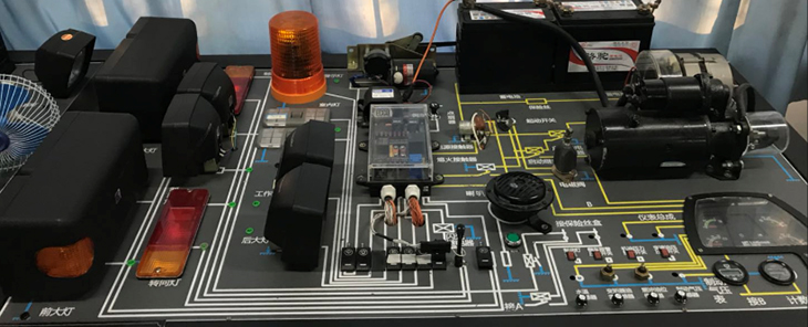該設備采用全新解放CTM131柴油機整車(chē)電器實(shí)物為基礎,充分展示汽車(chē)儀表系統、燈光系統、雨刮系統、喇叭系統、發(fā)動(dòng)機電器系統、起動(dòng)系統和充電系統等汽車(chē)電器各系統的組成結構和工作過(guò)程。