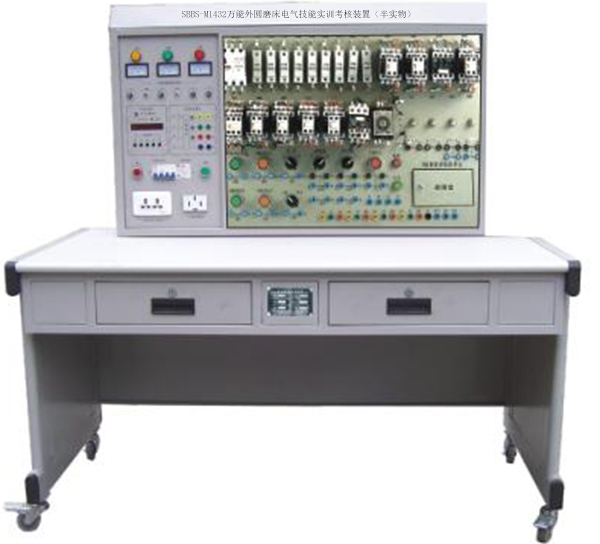 萬(wàn)能外圓磨床電氣技能實(shí)訓考核裝置由電源控制部分、機床電氣控制部分、半仿真機床實(shí)物部分構成。電源控制部分包括實(shí)訓定時(shí)、定時(shí)報警、安全用電自動(dòng)控制等,機床電氣控制部分把整臺機床內部電器裝在正面面板上,能直觀(guān)地觀(guān)察機床工作時(shí)各電器的動(dòng)作狀況。故障點(diǎn)在面板上設有相應測試點(diǎn),供實(shí)訓考核者測試用。仿真機床部分能模擬機床各種運動(dòng)。通過(guò)本裝置的實(shí)訓能使學(xué)員掌握機床常見(jiàn)故障的現象、故障產(chǎn)生的大概部位,熟練掌握機床電路工作原理,其是維修電工初、中、高級技能鑒定的理想實(shí)訓設備。